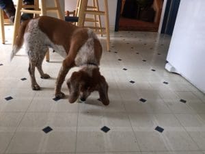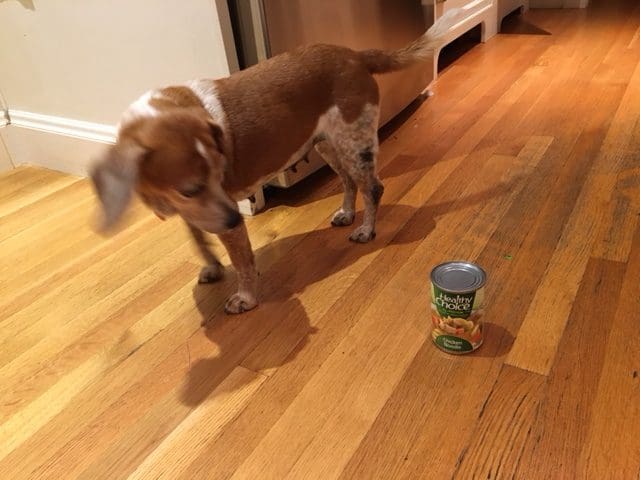 It’s a simple protocol, really. The key is to drop or place on the floor only items that the dog doesn’t want to eat. As successive items are dropped, the speed and enthusiasm with which the dog approaches the food slows, eventually resulting in what can only be described as ennui de chien. Yes, Beagle. This is so fancy it gets French.