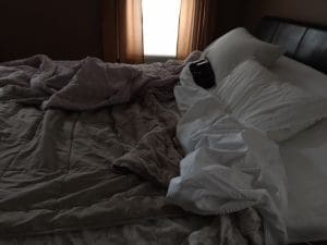 I looked on the far side of the bed, under the dresser, in the closet and behind the chair. I looked in the pile of folded laundry I’d left on the chair, and of course I looked under the blankets on the bed. You were nowhere.