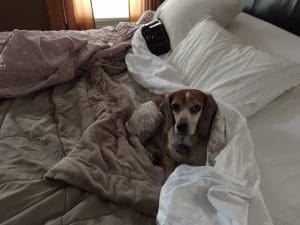 I spread my hands along the covers on the bed again, but they were bereft of beagle. I was mystified.