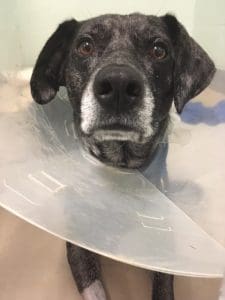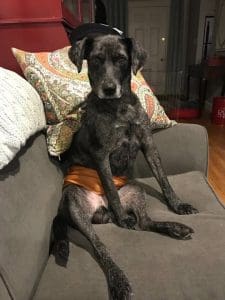 All this to say that when the veterinary staff sent your person a picture of you with a “He’s doing great!” note after your hind-end renovation yesterday, this ultimate unexpected event seemed, for a moment, to have had an impact. “You cut what off?” your eyes seemed to say.