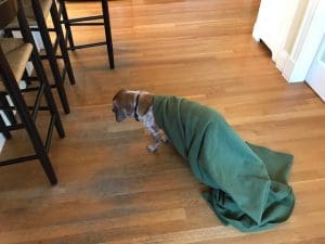 But it’s possible you took it a little far this morning. Typically thirsty from your post-breakfast nap, you jumped down from the window seat and had a drink, then checked under the chairs for crumbs, then headed to the office. In other words, you went about all your morning tasks as usual, but you did it all while still draped in your blanket.