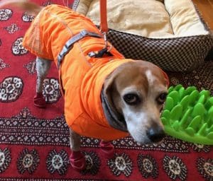 “I’m glad that Eve, of her own volition and no thanks to you, stops by to take me on the walk you can no longer be bothered to take me on – a trend, I’ve noticed, since you fell off those stairs a couple of months ago. But as much as I enjoy going out, your joint insistence on wrapping me in this outfit is not OK. Not at all OK.”