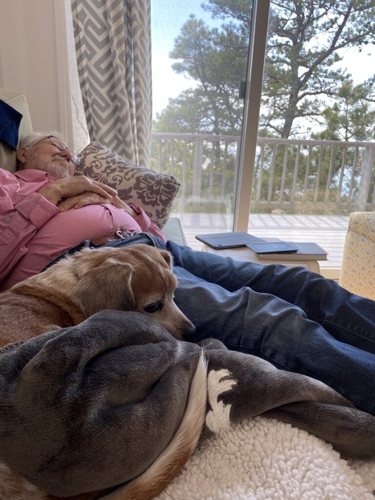 We have been fogey-sitting now for days. Many days. Hundreds and hundreds of days. I move from couch to table as I work through the hours between tasks like, “Did you hear that? Maybe it’s the mailman!” (We don’t have a mailman.) ” What did you do with the remote?” (Nothing. It’s on your lap for easy raising the volume of MSNBC from the high 50s into the 60s.) “Oh Marjie, I’ve been meaning to ask you. Will you please rewire the wifi system? I bought a router but the thing doesn’t work and I think just a wire will do it. Oh, just drill through the floor.”